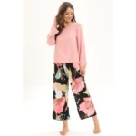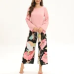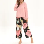 Wrap yourself in cozy elegance with our Barbie Pink 2Pcs Floral Printed Pajama Set, the perfect sleepwear solution for women who value comfort and style. Designed for the modern woman looking to buy ladies clothes online, this set combines a soft round-neck long sleeve top with beautifully printed floral trousers, creating an effortlessly chic look for both sleeping and lounging.