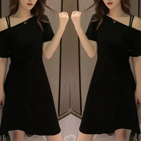 The Black One Shoulder Solid Slim Fit Knee Length Dress Plus Size features a striking asymmetrical neckline that brings a contemporary edge to a classic silhouette. The one-shoulder design is complemented by a subtle double strap detail, adding visual interest while maintaining a clean, elegant look. Crafted with a solid pattern and thoughtful tailoring, the dress fits slim through the waist to gently define the figure, then flows into a slight A-line skirt that offers comfort and graceful movement.