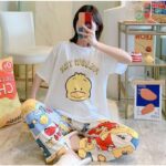 Chick Cartoon Duck Print 2Pcs Pajama Set Womens