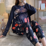2PCS Long Sleeve Cartoon Pajama Set for Women in Black